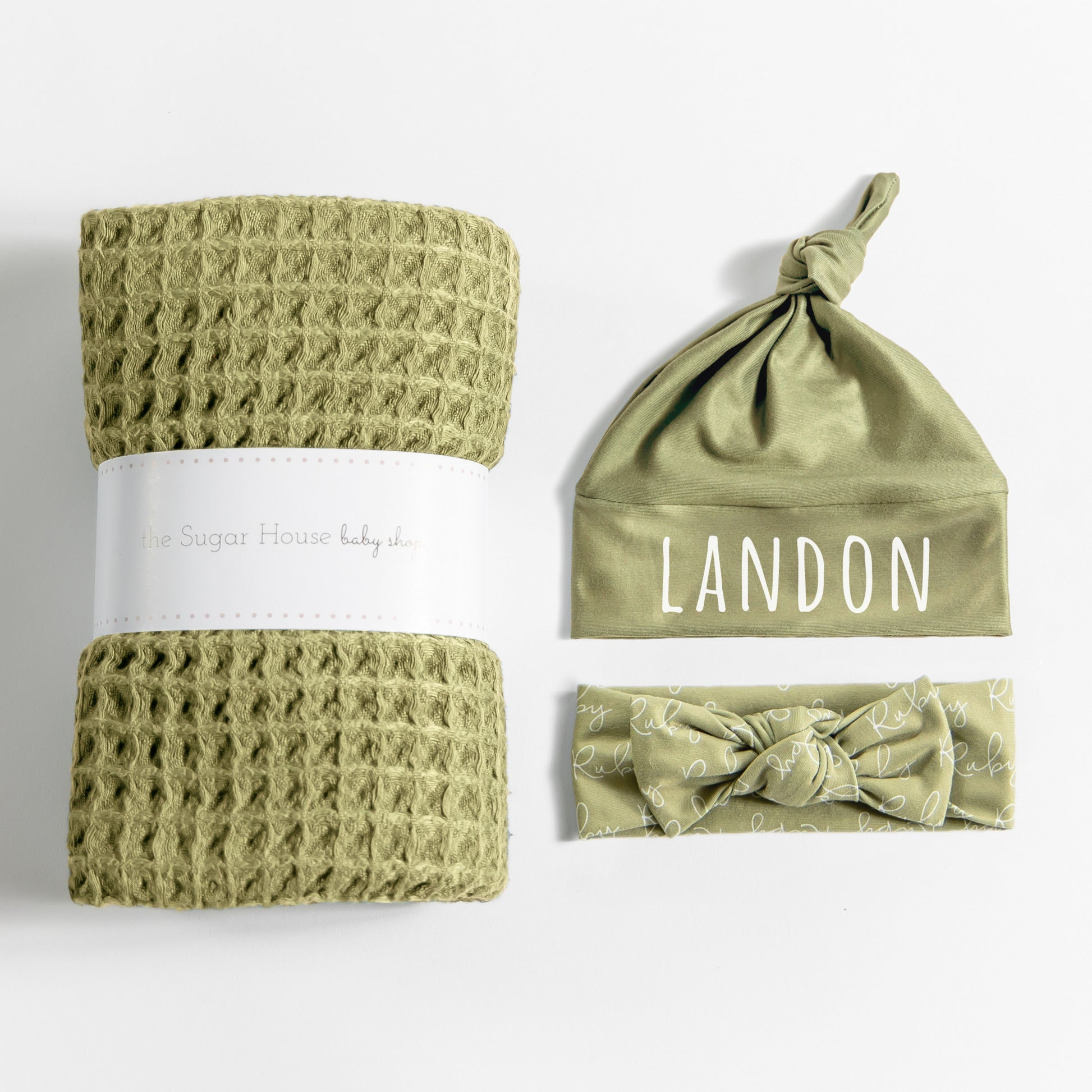 Waffle Blanket Set - Olive